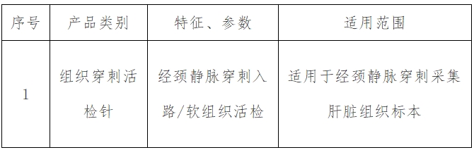 2.4、调研列表范围:填报产品应为已获得国内有效注册证的“组织穿刺活检针”类医用耗材,详见下表: