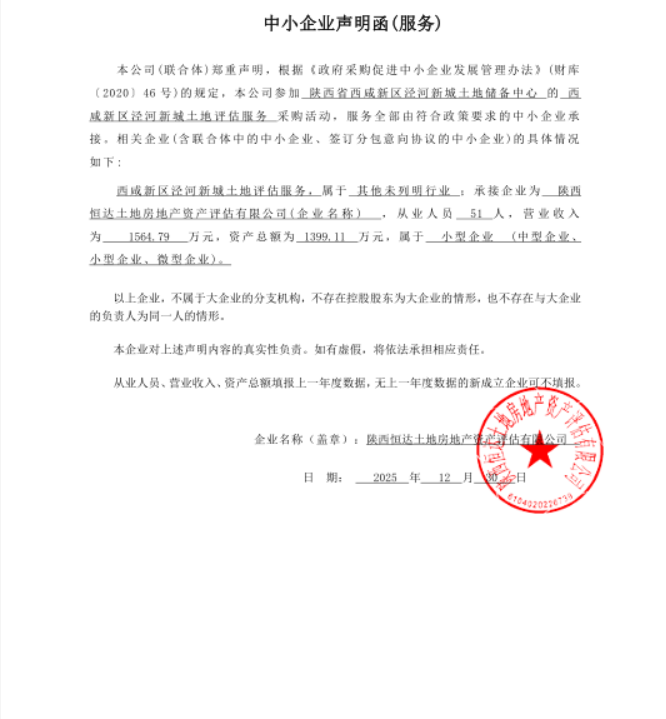 陕西省西咸新区泾河新城土地储备中心西咸新区泾河新城土地评估服务中标(成交)明细.pdf 中小企业声明函.png 磋商文件-西咸新区泾河新城土地评估服务-定稿.doc